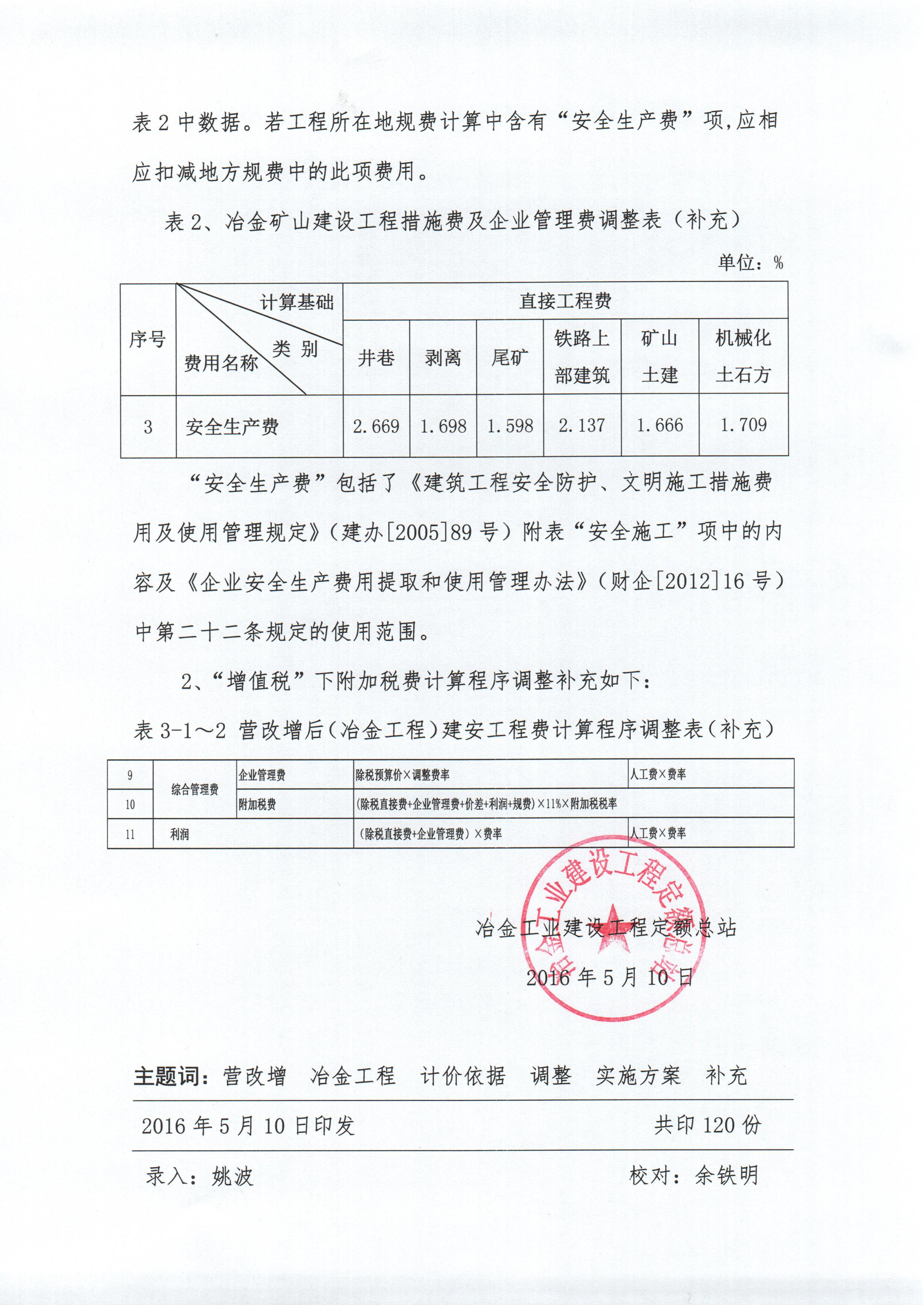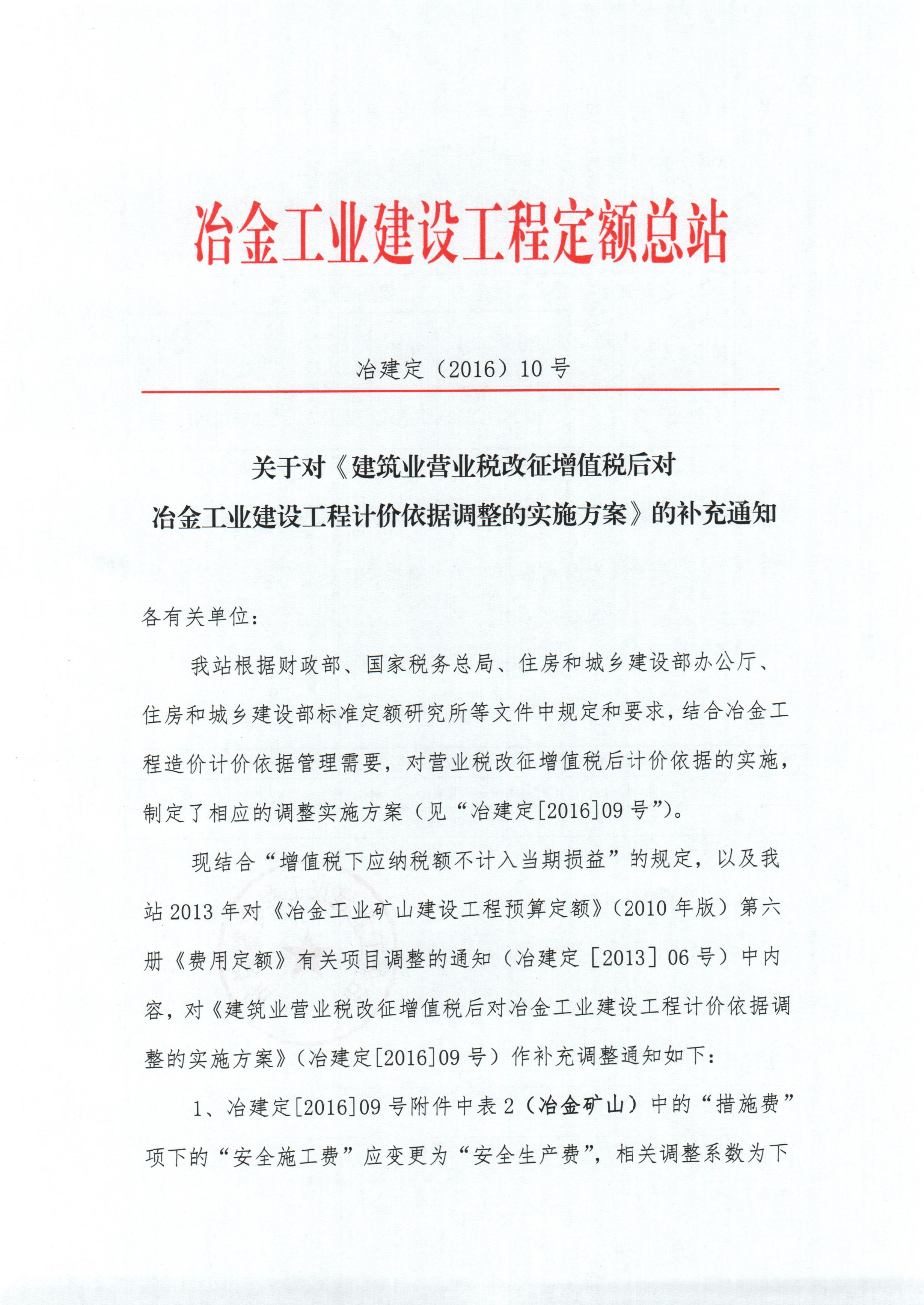 冶金:对《建筑业营业税改征增值税后对冶金工业建设工程计价依据调整的实施方案》的补充
