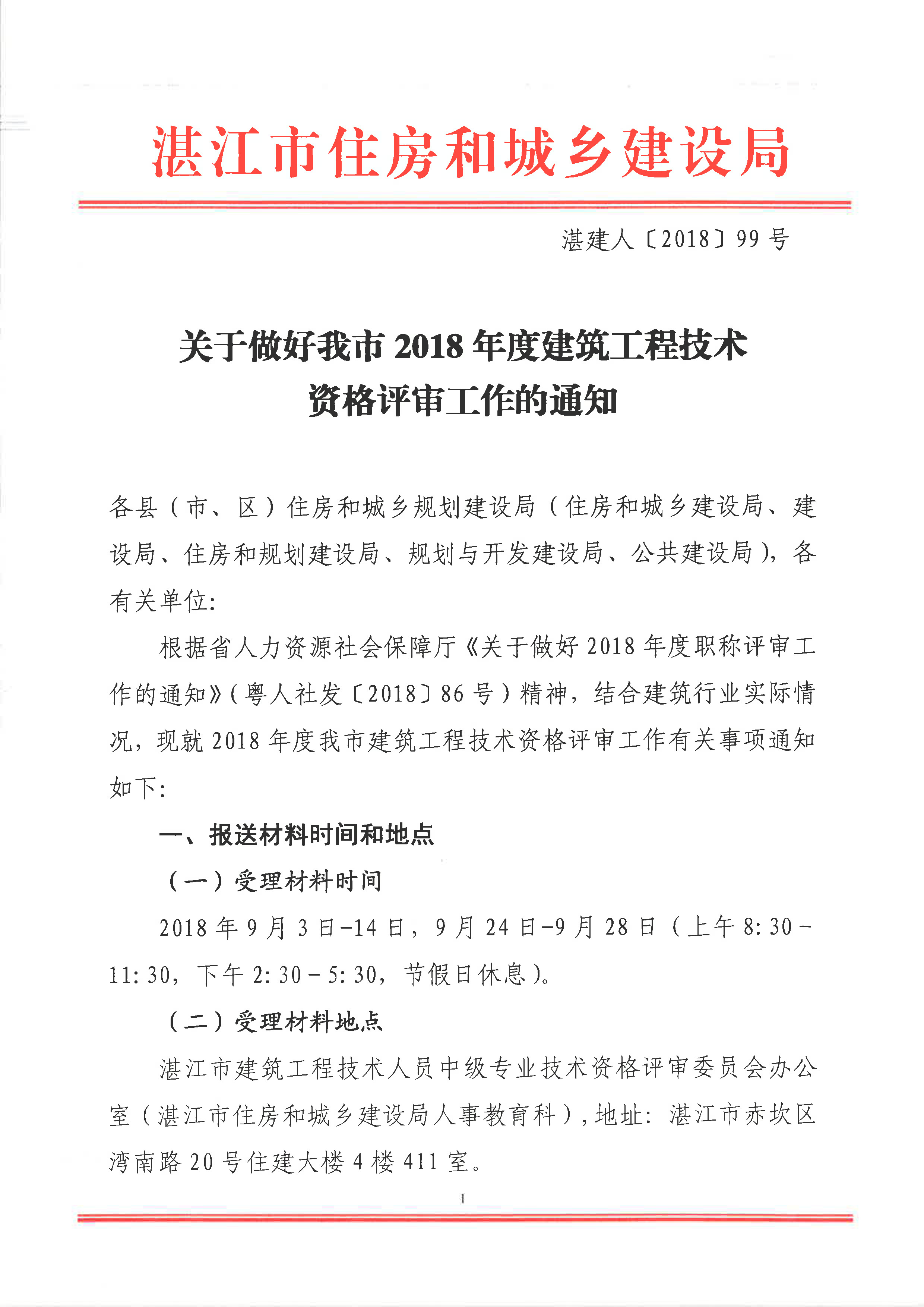 湛江市:关于做好我市2018年度建筑工程技术资格评审工作的通知